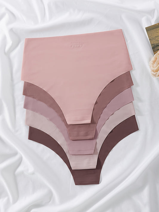 5pcs High Waist Seamless Mixed Color Panties Pack, Women's Underwear & Lingerie
