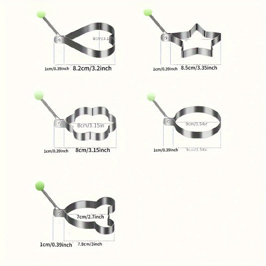5pcs Stainless Steel Omelet Shaper Fried Egg Mold, Fried Egg Cooking Tools, RV Kitchen Accessories Gadgets