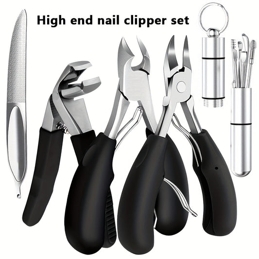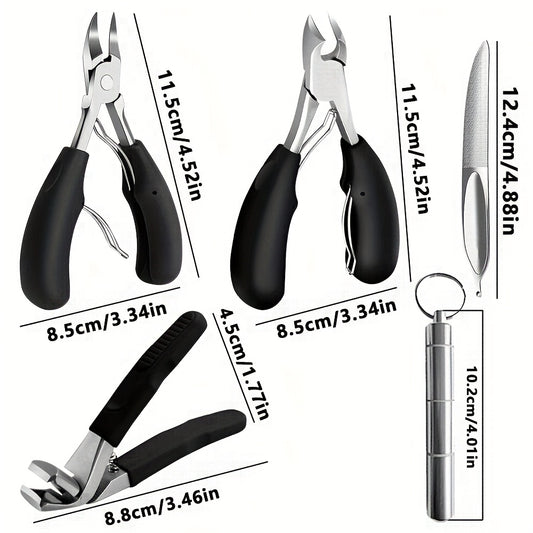 5pcs Thick Nail Toenail Clipper Set for Seniors - Angled Head Big Toe Nail Clippers with Catcher, Wide Jaw Opening Toenail Scissors Suitable for Thick Nails, Heavy Duty Nail Clippers with Nail File, Cuticle Nippers and Beauty