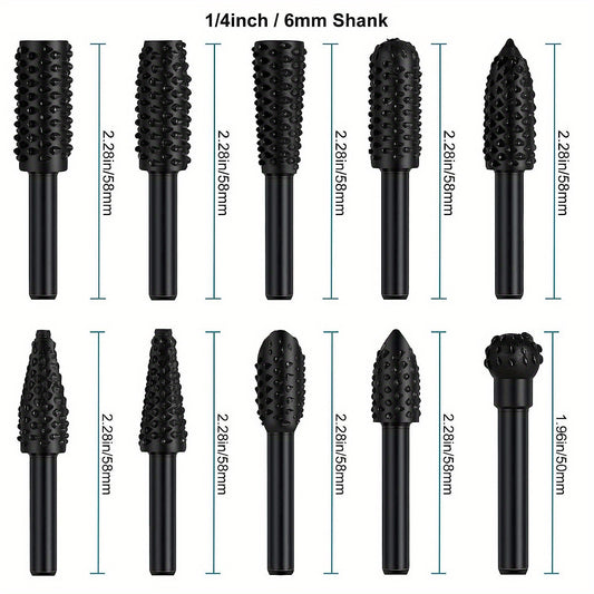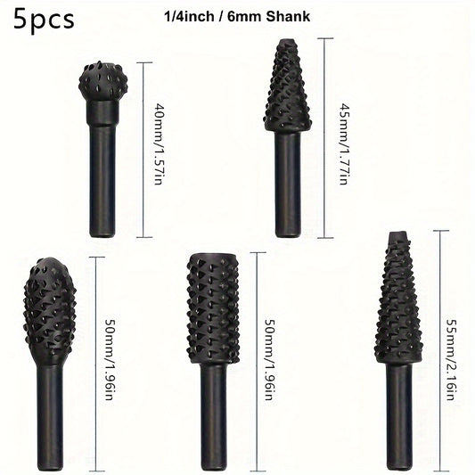 5pcs/10pcs Wood Carving File Rasp Drill Bit, 1/4" 6mm Rotary Rasp Drill Bit Set, DIY Woodworking Rotating Embossed Chisel Shaped Shank Tool Burr Power Tools For Engraving Polishing Grinding