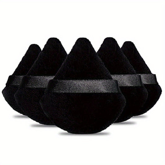 5pcs Soft Triangle Powder Puffs for Loose Powder, Mineral Powder, Body Powder, Velour Cosmetic Foundation Sponges - Nude and Black - Beauty Makeup Tools
