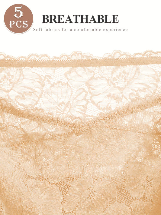 5pcs Women's High-Waisted Tummy Control Briefs - Soft Lace Trim, Butt-Lifting & Tummy Control, Elegant Lace Underwear For Everyday Comfort