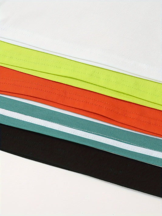 5pcs Solid Color & Striped Round Neck T-shirt Tees Tops Casual Soft Comfortable, Boys And Girls Summer Clothes