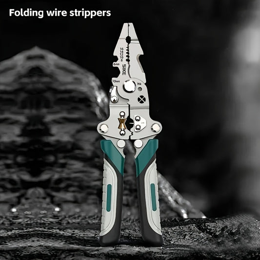 Collapsible Multi-Function Electrician's Industrial Grade Wire Stripper, Durable High Carbon Steel Precision Tool for Cutting, Crimping, and Stripping - Suitable for All Electrical Work