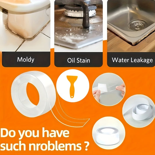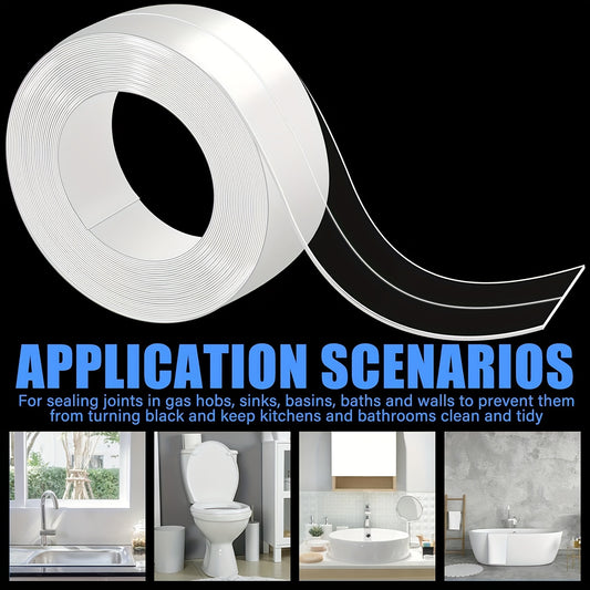 Clear Kitchen & Bathroom Sealant Tape - Self-Adhesive Gap Filler for Countertops, Stovetops, Sinks - Multi-Surface Transparent Seal Strip, Length 196.85 Inch Width 3.8cm, PVC Material, Ideal for Tile Surfaces, Kitchen Sealing