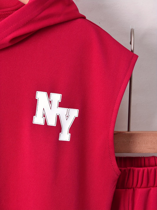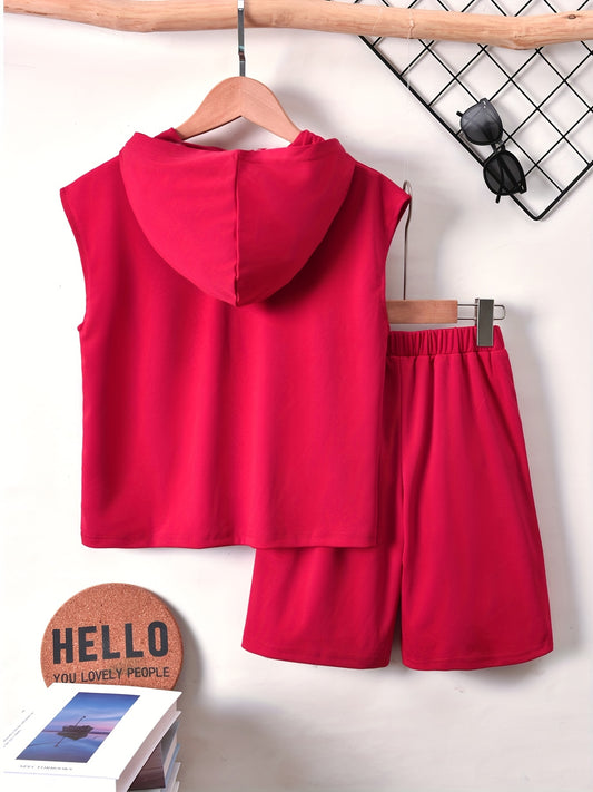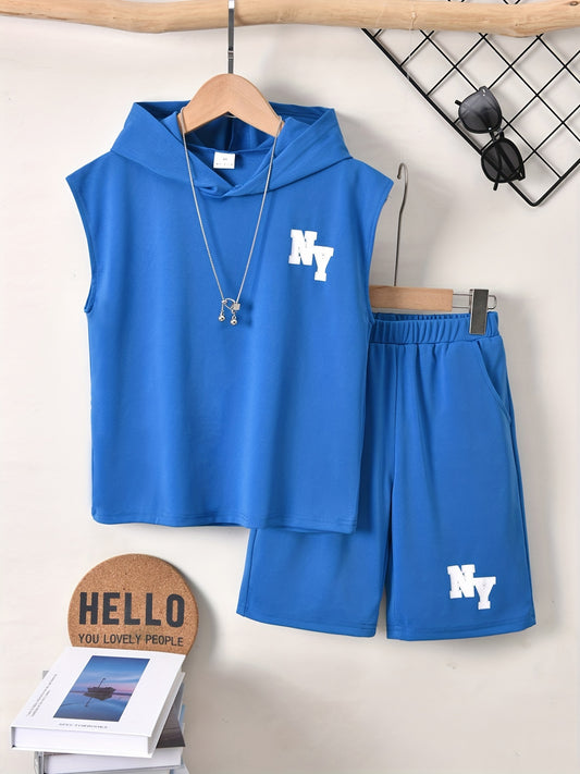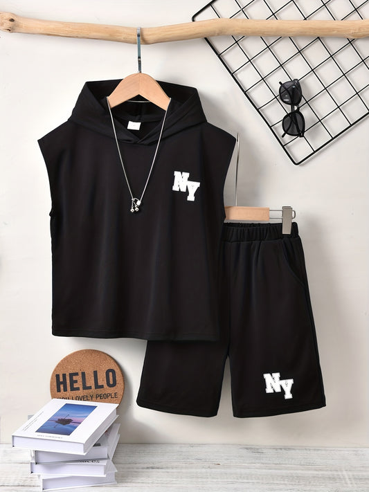 Cool Short-Sleeve T-Shirt with Letter Print And Shorts Set for Boys, for Outdoor