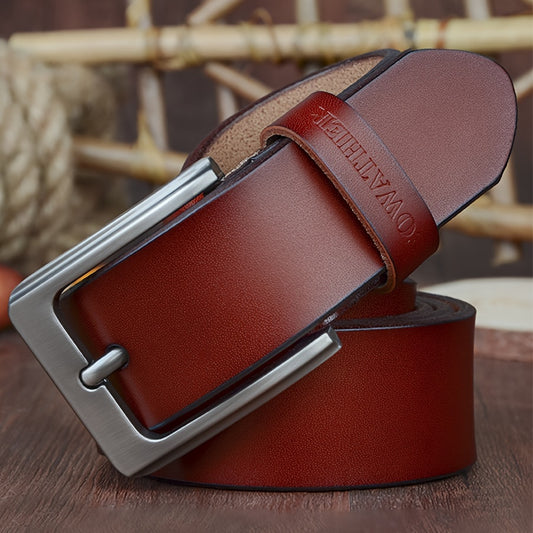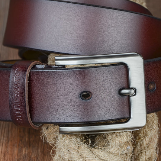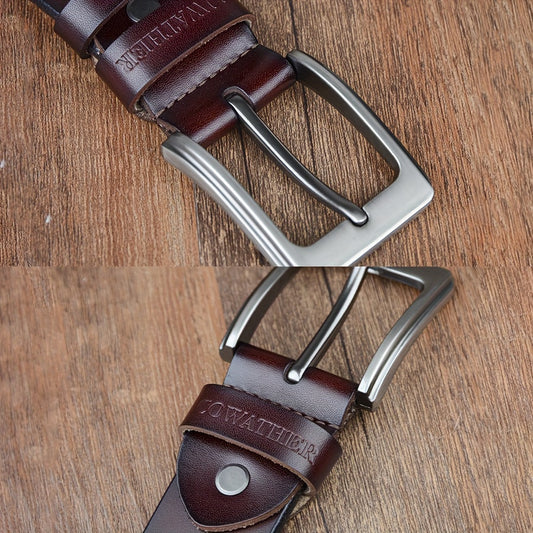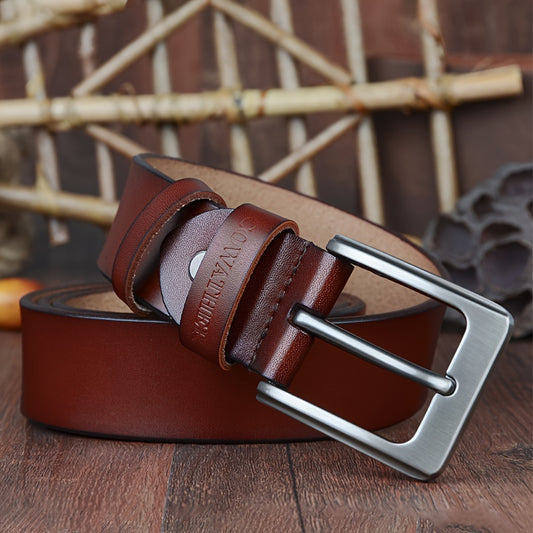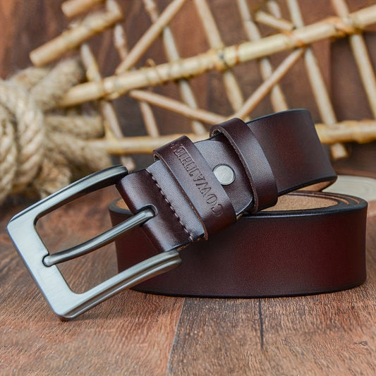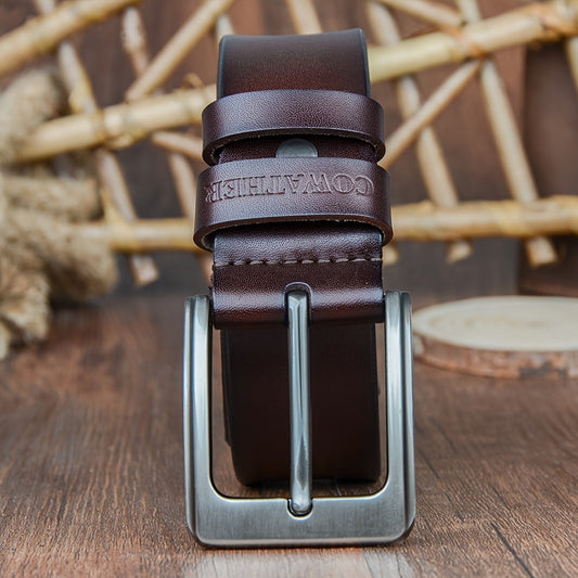 COWATHER Men's Belt - Classic Second-Layer Cowhide, Coffee Brown, Minimalist Vintage Metallic buckle, Everyday & Formal Wear - Durable Everyday Carry Belt XF002, Secondlayer Accessory, Office Attire, Simple Design, Sturdy Con