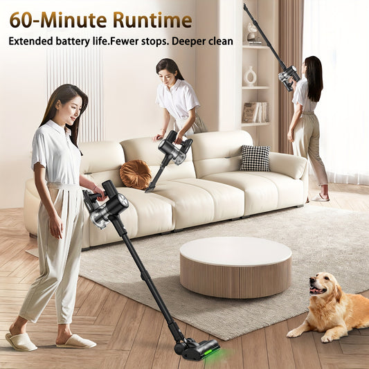 Cordless Vacuum Cleaner, Lightweight Powerful Stick Vacuum Cleaner, 60 Mins Runtime, Self-Standing, Stick Vacuum With Charging Dock Station, Upgraded Green Light&Anti-Tangle FloorBrush, Handheld Vacuum For Pet Hair/Carpet/Flo