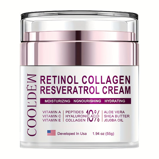 COOLDEW Luxury Retinol Collagen Resveratrol Cream with 10% Peptides, Hyaluronic Acid, Shea Butter & Vitamin A/C/E - Paraben-Free, Fragrance-Free, Non-Greasy Moisturizing for All Light Beige Skin Types (Sensitive, Dry, Oily) - Day