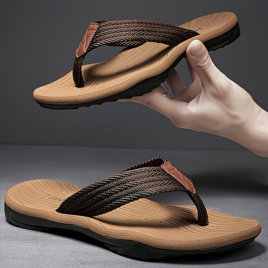 CYFMYD Men's Casual Fabric Flip-Flops with Striped Pattern - Lightweight EVA Sole, Comfortable Slip-On Design for Beach, Streetwear & Vacation, Beach Footwear, Stylish Slip-ons, Durable Shoes for Men and Women