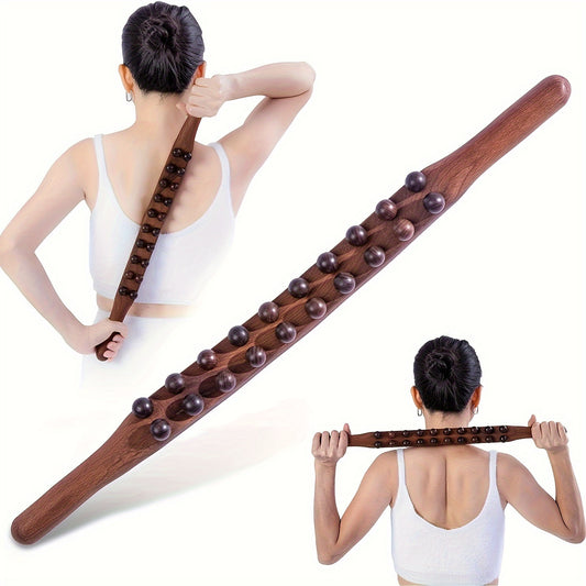 Double Row 20 Beads Carbonized Massage Stick - High Quality Wooden Meridian Roller, Suitable for the Whole Body, Professional Abdominal Gua Sha Tool, Health Care Massage Tool, Suitable for Waist/Abdomen/Legs/Hands/Back Body S