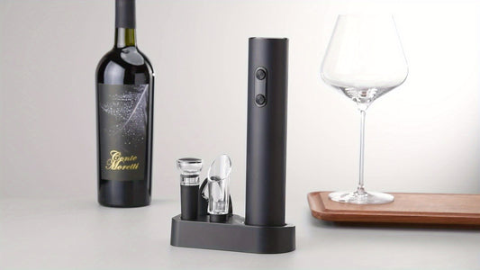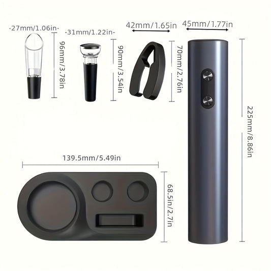 Electric Wine Opener - Single or 5-piece set with vacuum sealer and pourer, automatic brush bar tool kit for home, party, gifts.
