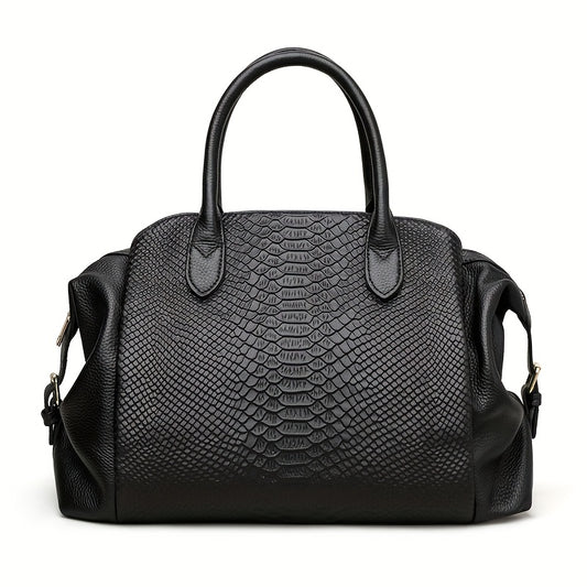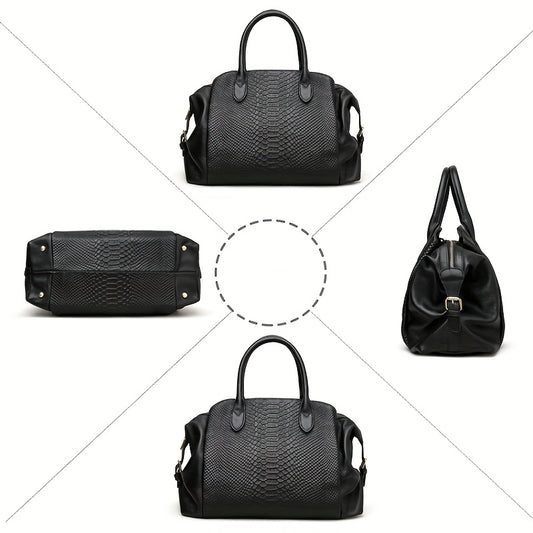 Elegant Black Snake Pattern Handbag for Women - Large Capacity, Detachable Shoulder Strap, Vegan Synthetic Faux Leather, Perfect for Daily Use and Work, Ideal Holiday Gift, Versatile Trolley | Avantgarde Style | Synthetic Fa