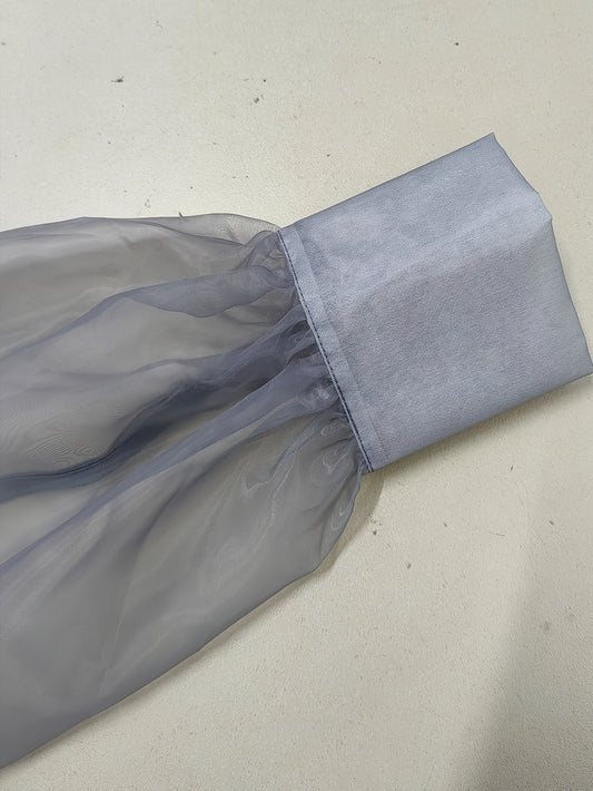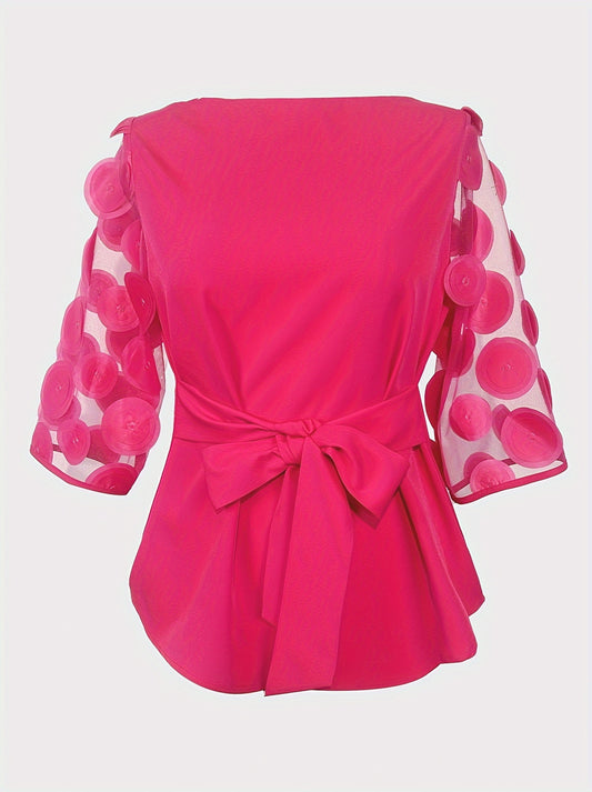 Elegant Off-Shoulder Blouse with Sheer Mesh Panel & Tie-Waist Detail - Chic Solid Color, Half-Sleeve Design, Machine Washable - Perfect for Stylish Outfits