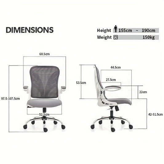 Fornecedor:Hi! ShopErgonomic Office Chair with Foldable Space-Saving Design, Breathable Mesh Back & Adjustable Lumbar Support, Flip-Up Armrests, Height-Adjustable - Heavy-Duty Plastic Frame, Foam Padding, White/Black Color Options - Ideal for HPreço normal A partir de €192,43 EURPreço normalPreço unitário / por-