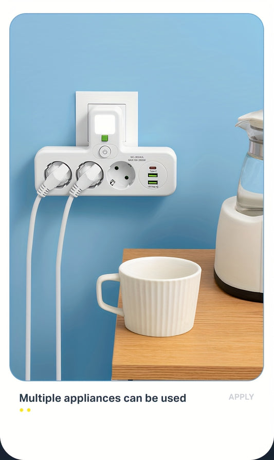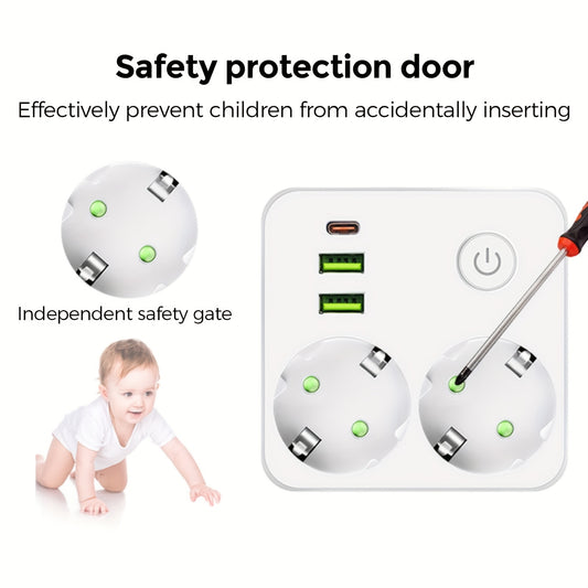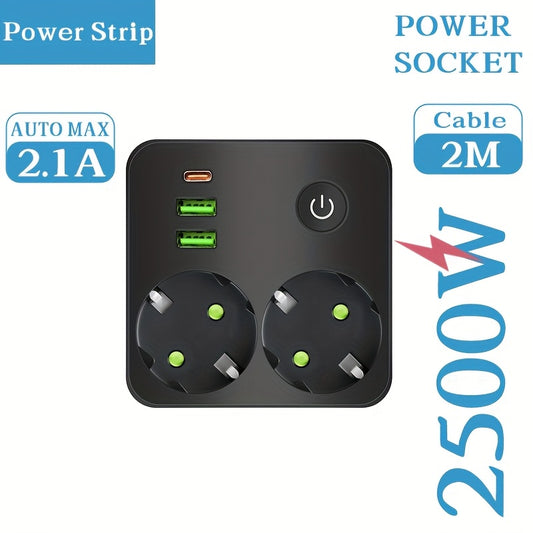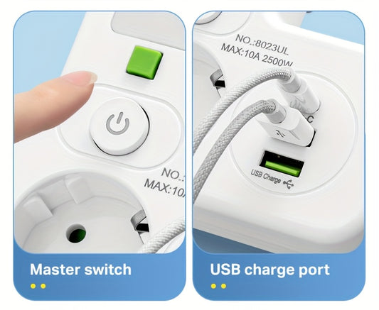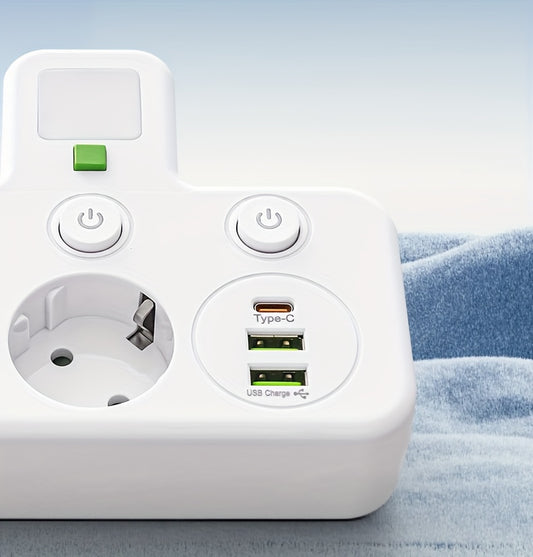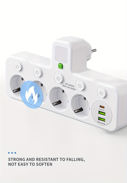 Fornecedor:Hi! ShopEuropean Standard Heavy-Duty 2500W Power Strip with 2 USB-A & 1 Type-C Ports, Global Voltage 110-250V, Overload & Overheat Protection, White EU Plug Converter for Home Office, Bedroom, Kitchen, Industrial Use - Multi-FunctionPreço normal €12,42 EURPreço normalPreço unitário / por-