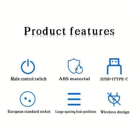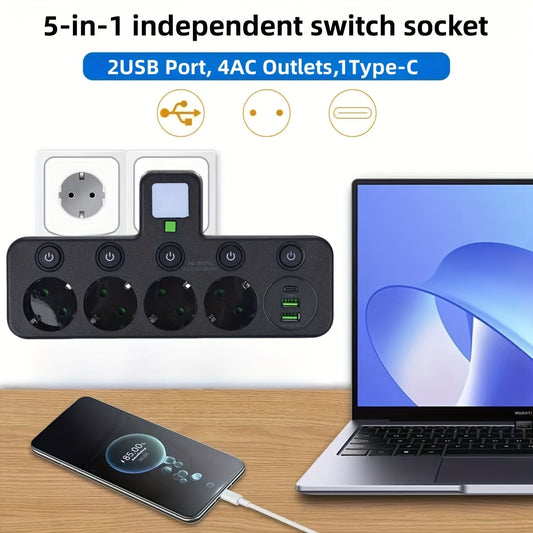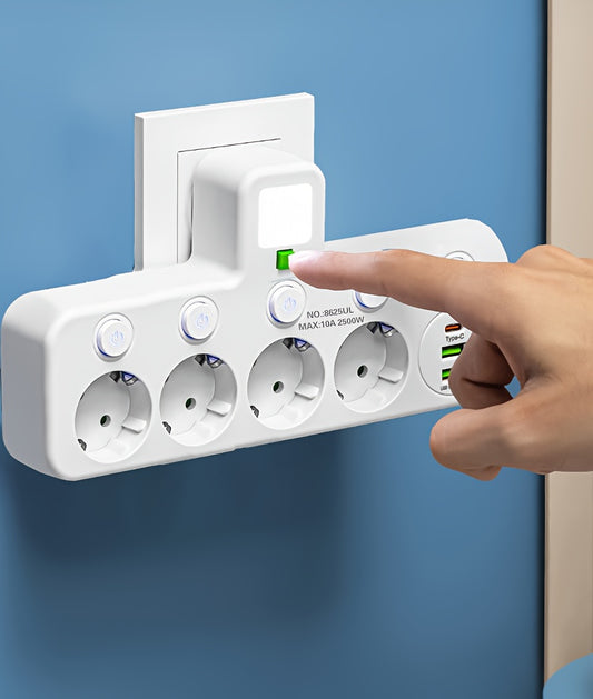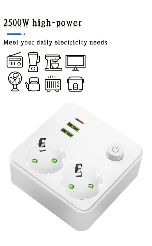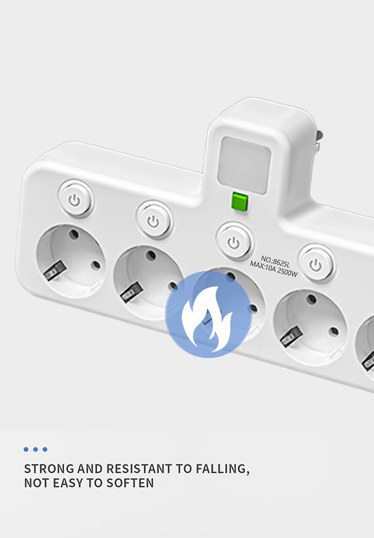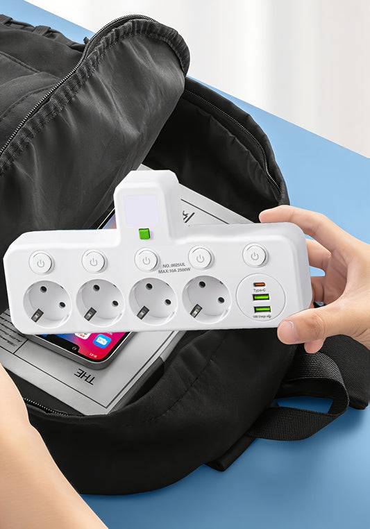 Fornecedor:Hi! ShopEU Power Strip Extension Socket with 4 AC Outlets and 2 USB Ports & 1 Type-C Charging Port, 2500W/10A, Suitable for Home, Office, Dormitory, and Game RoomPreço normal €15,68 EURPreço normalPreço unitário / por-
