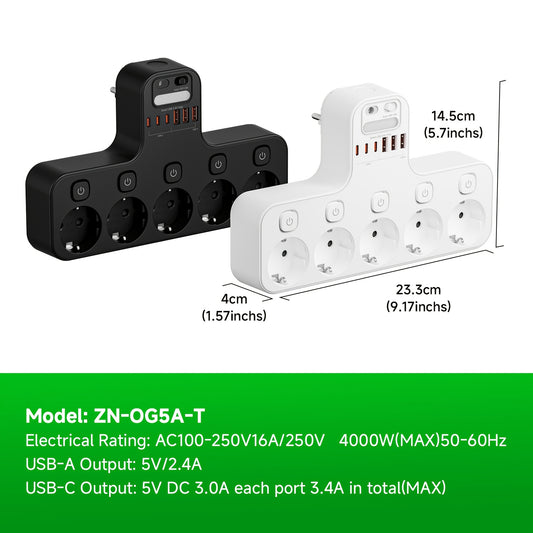 Fornecedor:Hi! ShopEuropean 5-Pin Socket Extension with 3 USB-A and 3 USB-C Ports, Overload Protection, Smart Light Sensor, 4000W, 16A, Ideal for Home, Outdoor, and Office Use, Outdoor Power Supply, Modern Power Outlet, Durable Power OutletPreço normal A partir de €32,26 EURPreço normalPreço unitário / por-
