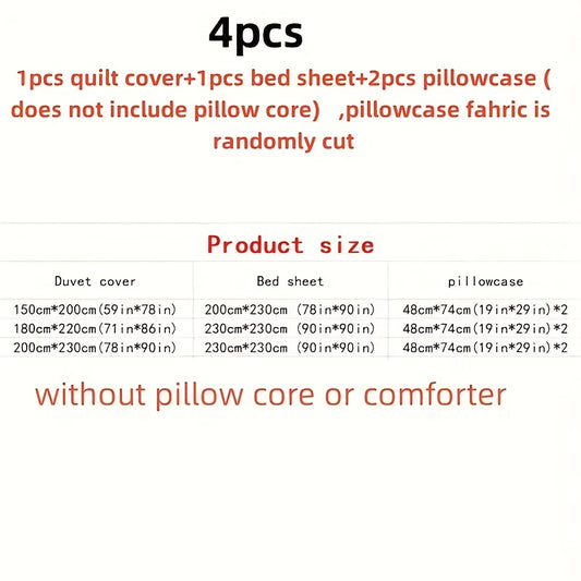 Fornecedor:Hi! ShopFour Seasons Four-Piece Set of Active Print Fabric, 1pc Quilt Cover Without Quilt Core, 1pc Bed Sheet, 2pcs Pillowcase Without Pillow Core, Comfortable, Soft, Breathable, Active Print Fabric, Suitable for Dormitory, Living RoPreço normal A partir de €25,06 EURPreço normalPreço unitário / por-