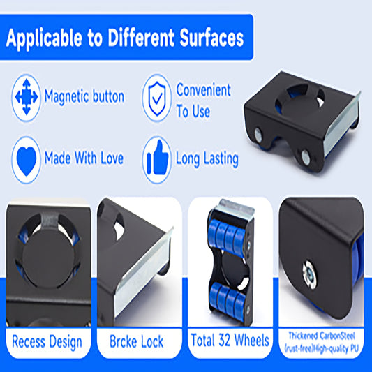 Fornecedor:Hi! ShopFurniture Sliders of 4 Metal Furniture Movers with 8 Wheels - Heavy Duty Furniture Lift Mover Tool Set of 340.19 KG Load Capacity Easy Sliders Roller Dolly for Moving Cabinet Piano Appliances SofPreço normal A partir de €35,92 EURPreço normalPreço unitário / por-