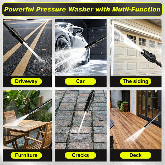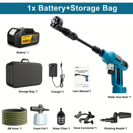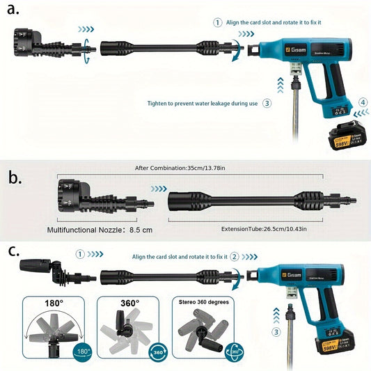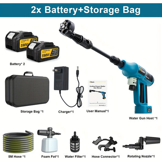 Gisam Cordless High-Pressure Car Washer Gun with Digital Touch Screen & 2 x 4000mAh - 6-in-1 Nozzles, 4-Speed Brushless Motor, Heavy-Duty Water Spray System for, Trucks, Motorcycles, Garden,, Driveway Cleaning (Portable)