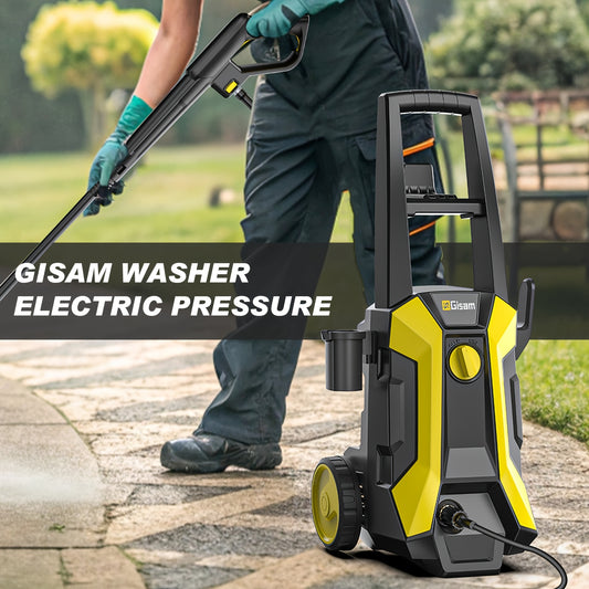 Gisam High-Pressure Washer 2200W 180Bar 480L/H with 8m Hose, Soap Bottle, Foam Nozzle & Lance Gun IPX5 Suitable for Cars/Fences/Gardens/Patios Yellow
