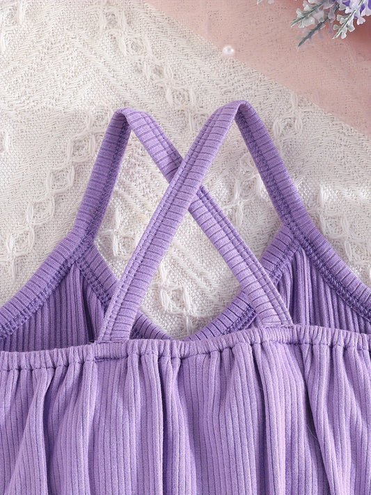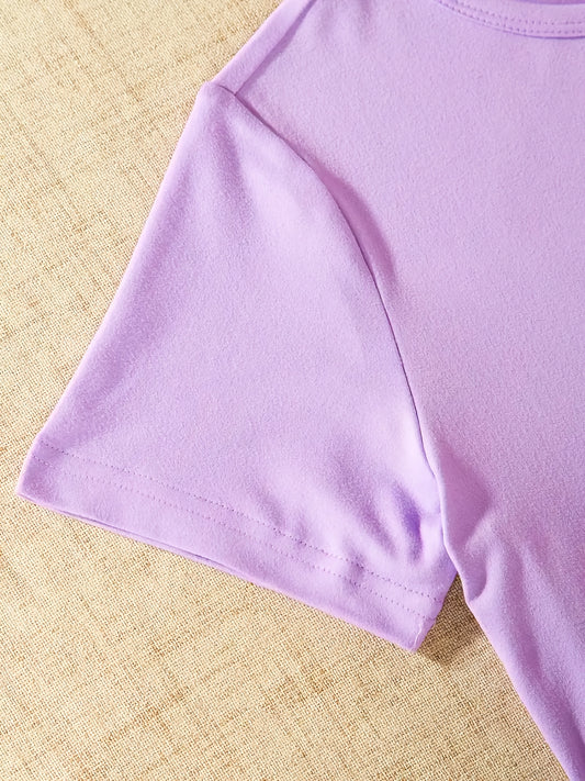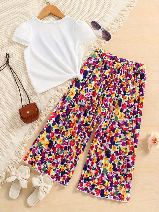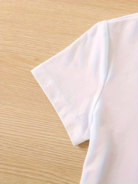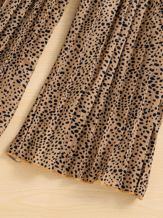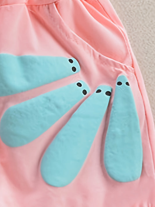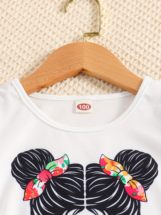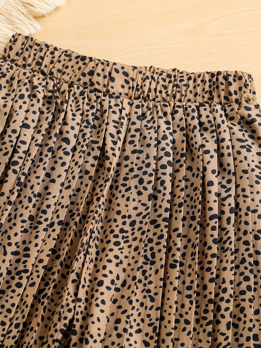 Girls' Fashion 2pcs Set, Cartoon Print Crew Neck T-Shirt & Pleated Polka Dot Pants, Casual Summer Outfit, Polyester & Spandex, Knit Fabric, Regular Fit - HWMFSNHFZ, for Outdoor