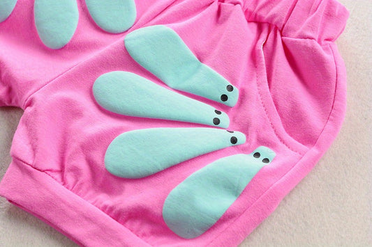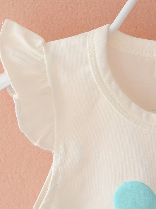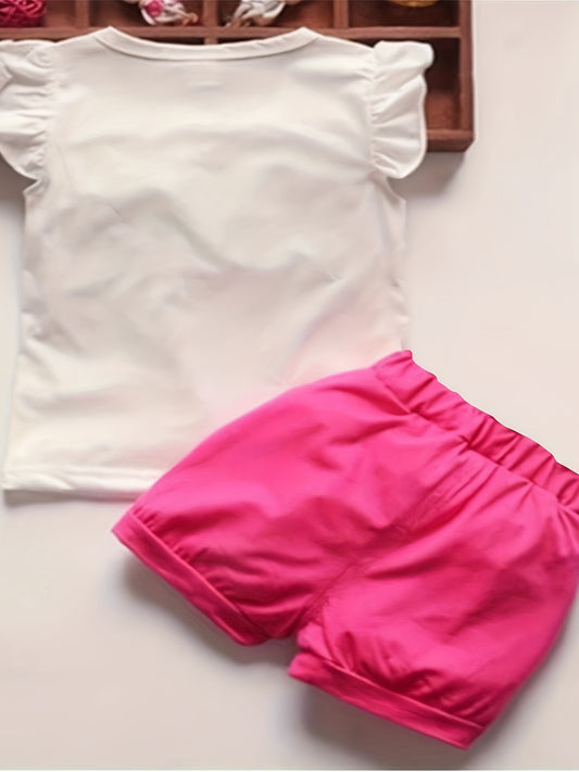 Girl's Summer Cotton Two-piece Set, Baby Girl Sunflower Print Short Sleeve Ruffled Top & Shorts Outdoor Wear Outdoor Clothing