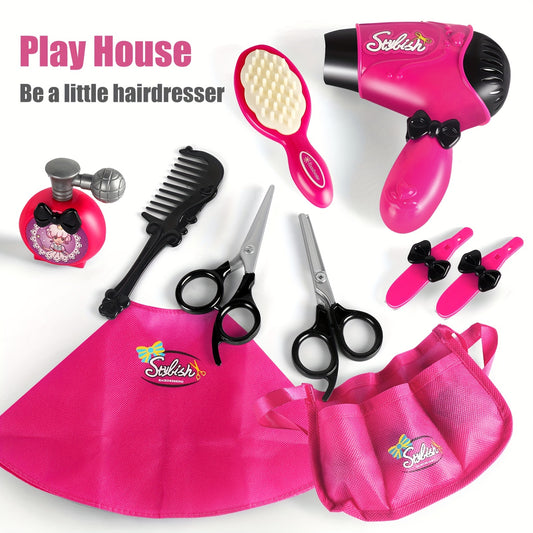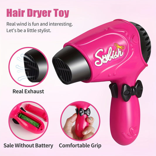 Girls Beauty Salon Set Pretend Play Stylist Hair Cutting Kit Hairdresser Toys With Hair Dryer, Scissors, Barber Apron And Styling Accessories (Not Real Hairdresser Toys, Hairdresser Toys Model)