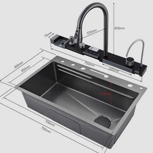 Gold SUS Smart Kitchen Sink Nano Stainless Steel Hand Made Kitchen Sink Waterfall Kitchen Sink With Digital Display