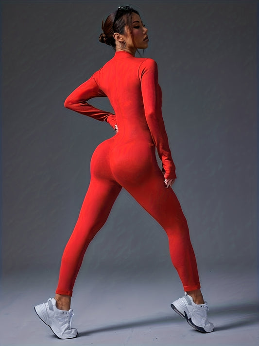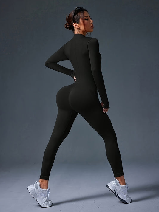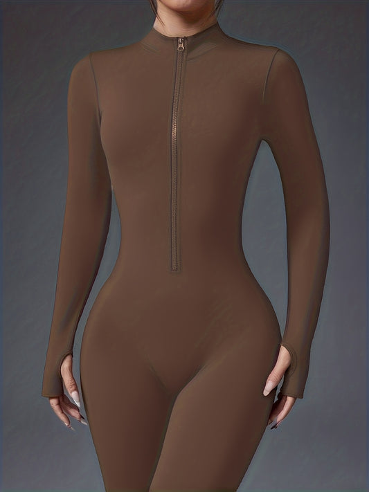 Women's Full-Length Zipper Jumpsuit - Full-Body Compression-like Fit (Tummy Control) - High-Elasticity Slim-Fit Long Sleeve Athleisure Suit for,, Dance - All-Season Outfit ( swear) - Easy-Care (No Bulk) -