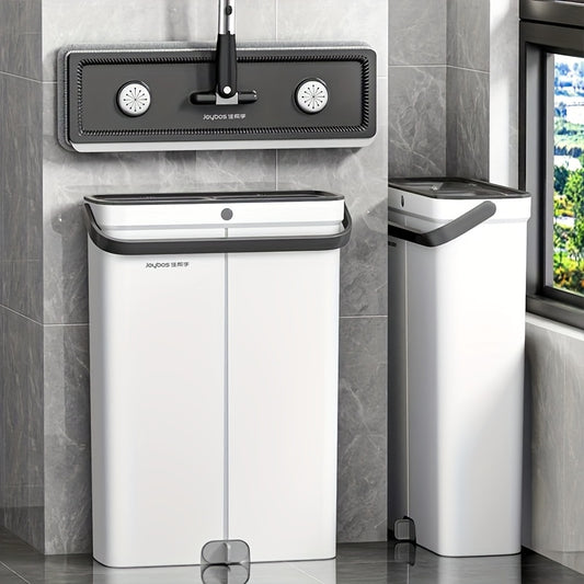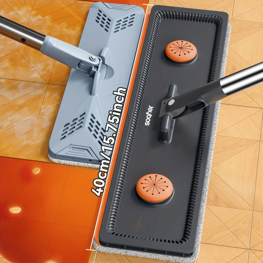 JOYBOS Advanced Lazy Mop Kit - Hand-Free Flat Mop with Scraper Bucket, Stainless Steel & Durable ABS Construction, 2 Washable Microfiber Pads for Living Room, Bathroom, Kitchen, Patio, Vinyl Wood & Tile Floors, No Electricity