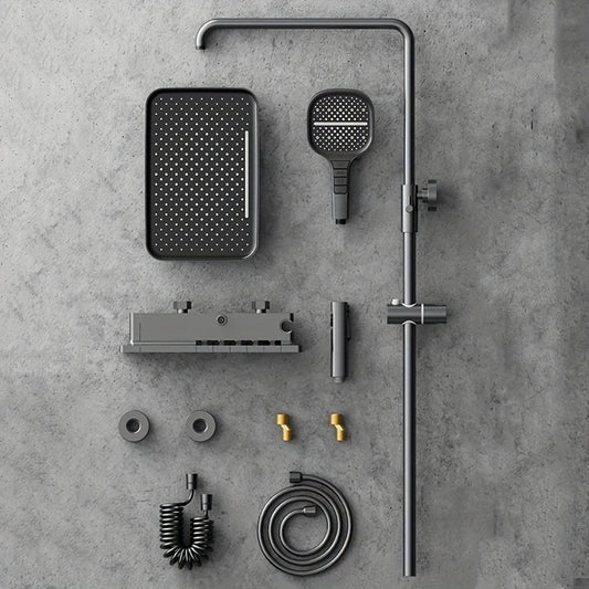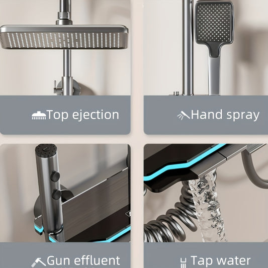 Luxury Gun Gray Shower Head Set, Piano Key Ambient Light, High Pressure Rainfall System, 4-in-1 Bathroom Accessories Kit, Digital Shower Head, Ideal Gift for Home Bathroom Decor, Perfect for Easter and Ramadan