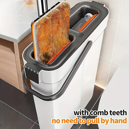 Gray Flat Mop + Narrow Slot Cleaning Bucket Set, Hand-free Lazy Mop Mover, Wet And Dry One Mop Cleaner, Household Cleaning Tool, Send Replacement Cloth, Suitable for Living Room, Bedroom, Kitchen, Bathroom, Toilet, Commercial