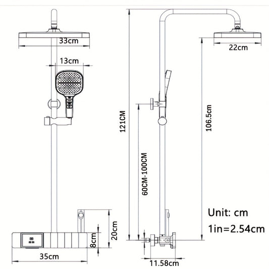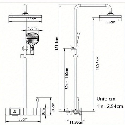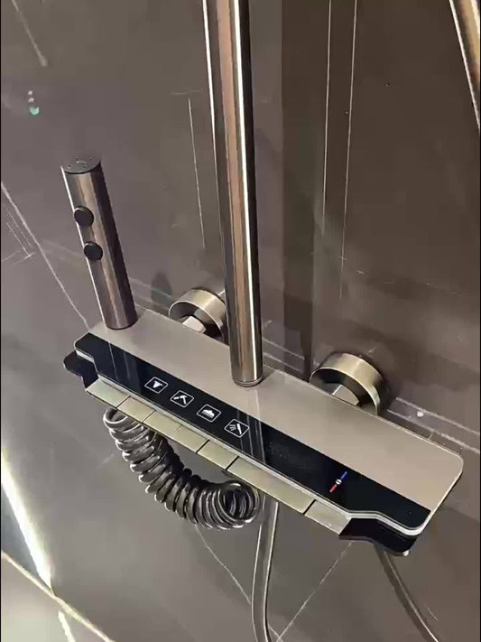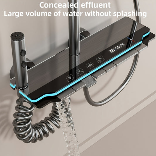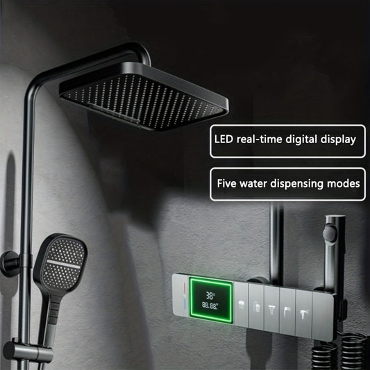A Set of Piano Key Digital Display Shower System, Five Water Outlet Modes, Built-In Ambient Lighting, Hydropower Generation, All-Copper Body, Extra-Large Display Screen, 2025 Latest Model.