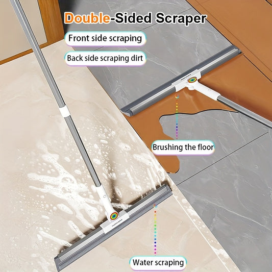 30cm/11.8inch All-in-One TPR Squeegee, Magic Broom with Comb Teeth, Stainless Steel/TPR Multi-Surface Floor, Window, Bathroom Cleaner - Effortless Water, Dust, Pet Hair Removal for Hardwood, Tile, Glass, Kitchen - Space-Savin