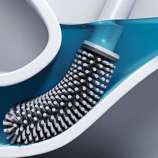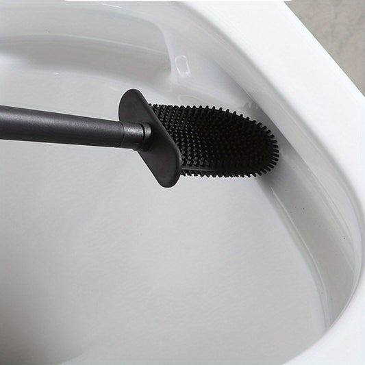 1pc No-Slip Silicone Toilet Brush Set with Long Handle and Soft Bristles for Easy and Quick Cleaning