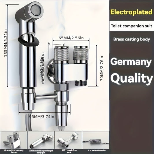 A Handheld Bathroom Cleaning Kit Equipped With A Dual-mode Spray Gun And Extendable Hose, With A Diverter And Wall Bracket, Used For Toilet Flushing, Multifunctional Bathroom Spraying, And One In Two Out Control Valve