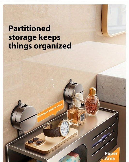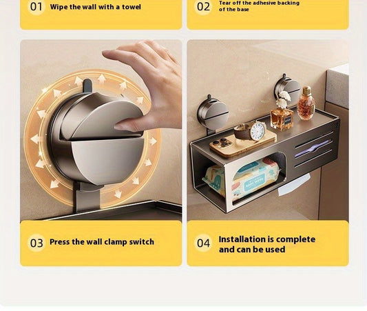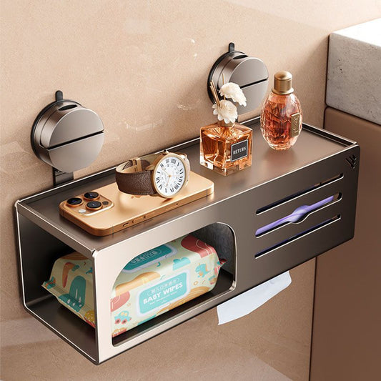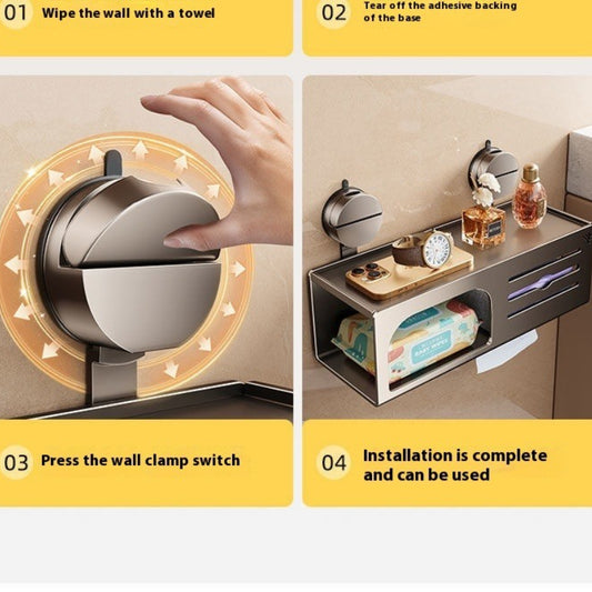 1pc Household Toilet Paper Holder with Storage Box, Suction Cup Wall-Mounted Bathroom Tissue Rack – No Drilling Required. Includes Phone Stand for Convenient Use in the Home or Shower Room, Toilet Tissue Holder for Bathroom