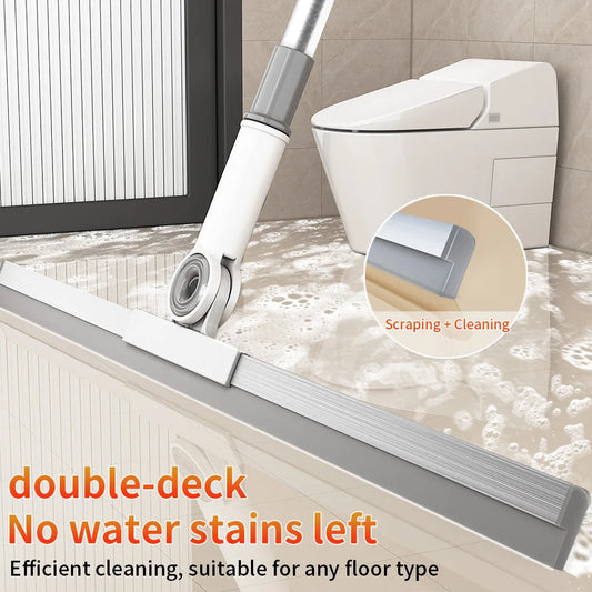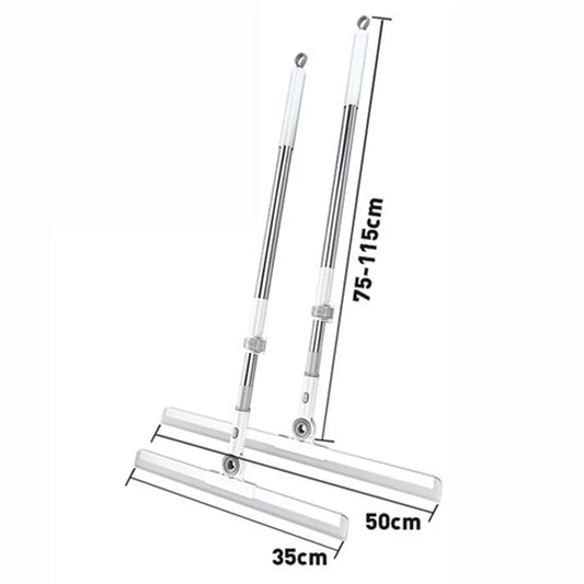50cm Rotating Scraper Glass Wipers Soft Bristle Household Stainless Steel Long Handle Floor Sweeping Magic Broom for Bathrooms