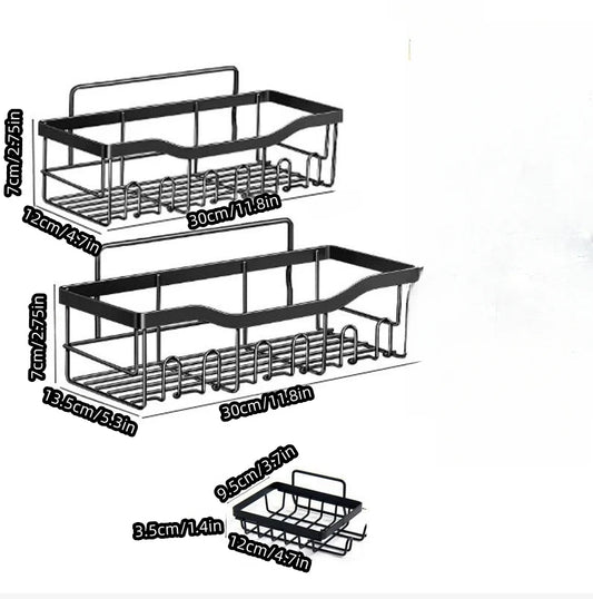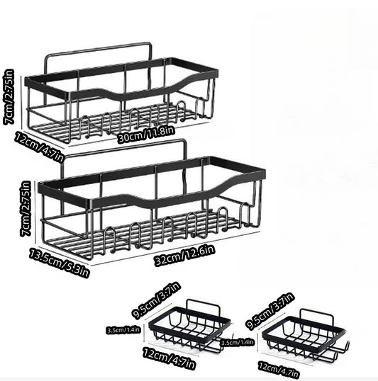 5-piece Set Wall Mounted Bathroom Shelf Black Iron Bathroom Kitchen Shower Shelves Metal Self-adhesive Storage Rack