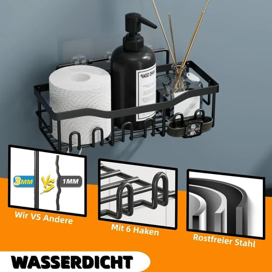 [Cast Iron Shower Shelf] 1pc Cast Iron Corner Shower Shelf - No-Drill Wall Mounted Black Wire Mesh Bathroom Storage Rack for Easy Access & Organization, Perfect for Shampoo, Conditioner, and Soap, Bathroom Storage Solution |