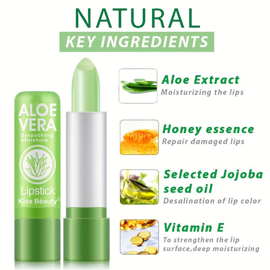 Aloe Vera Color Changing Lipstick, Long Lasting Moisturizing Temperature Color Changing Aloe Vera Lip Gloss Lip Balm, Green Lipstick That Turns Pink Magic Lipstick Makeup Valentine's Day Gifts