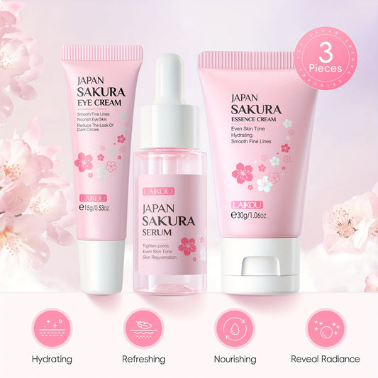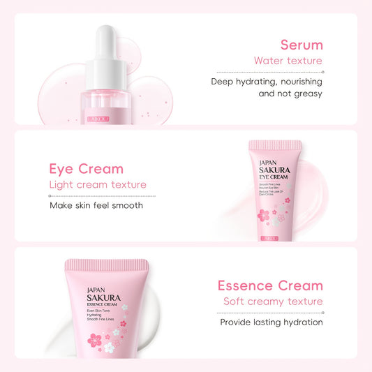 3pcs Set LAIKOU Japanese Cherry Blossom Skin Care Set 3 Piece Serum Liquid Eye Cream Face Cream Skin Care Kit Gifts
