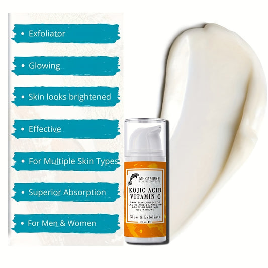 30ml Kojic Acid Serum Vitamin C Serum Dark Skin Glowing Even Skin Tone For Face And Body With Niacinamide Arbutin Glutathione 4-Butylresorcinol Exfoliator Glowing Renew Skin Looks Visibly Younger