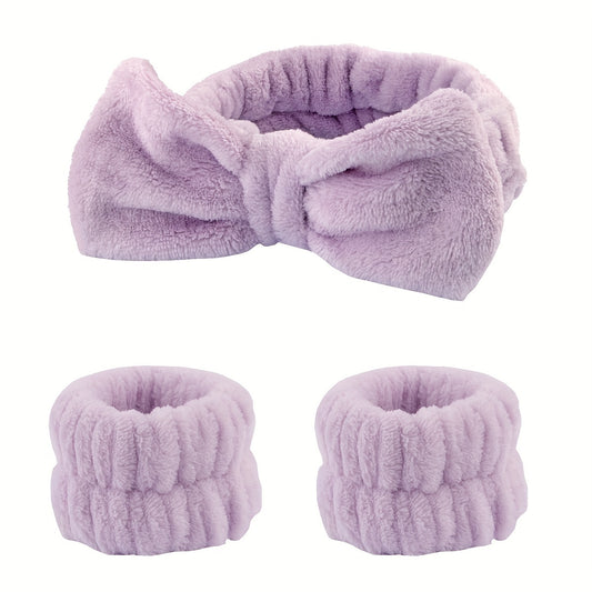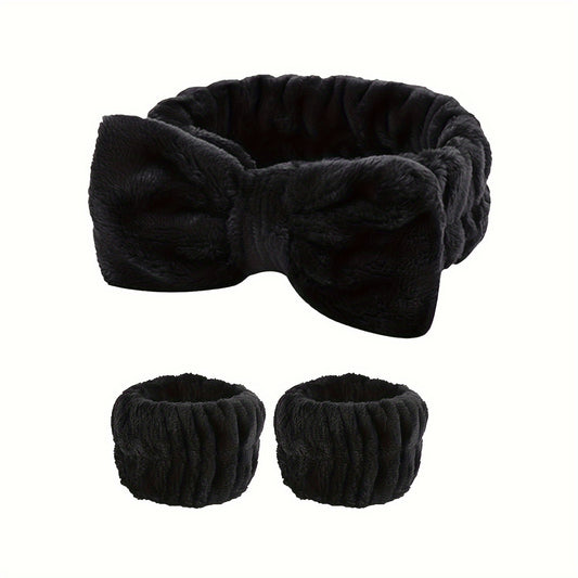 1pc/3pcs Cute Bow Hair Band And Wristband Set, Women Spa Headband For Washing Face, Makeup Hair Band, Skincare Headbands