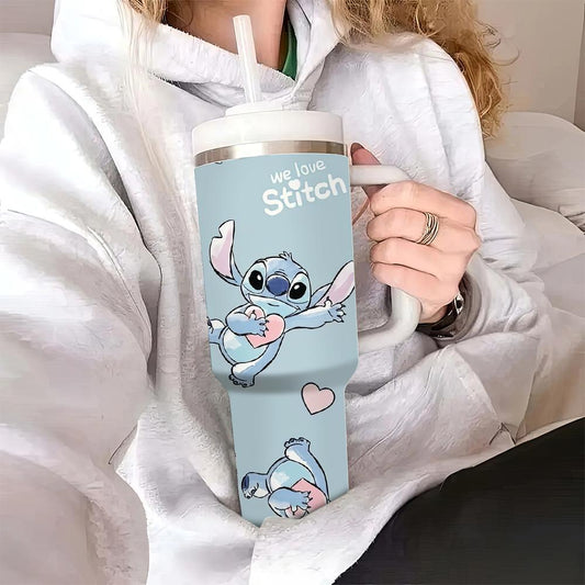 1pc Stitch 40oz Stainless Steel Tumbler with Lid and Straw, Leak Proof Vacuum Insulated Travel Mug, BPA Free, Hand Wash Only, Round Shape, Ideal for Valentine's Day, Easter, Mother's & Father's Day Gifts
