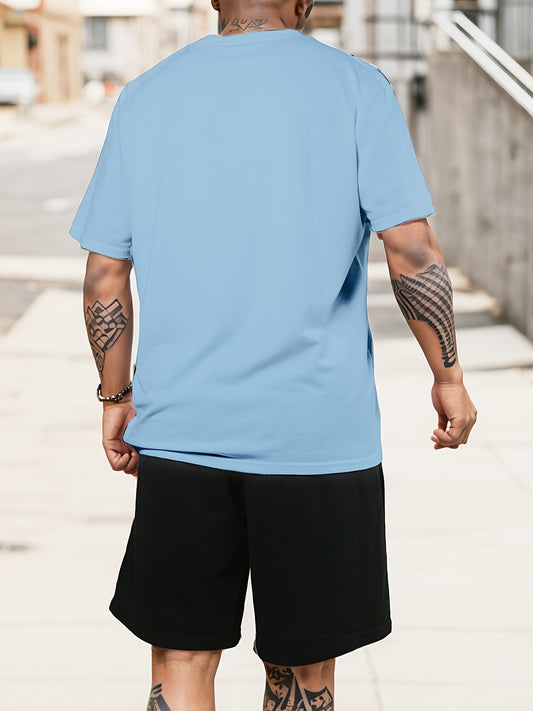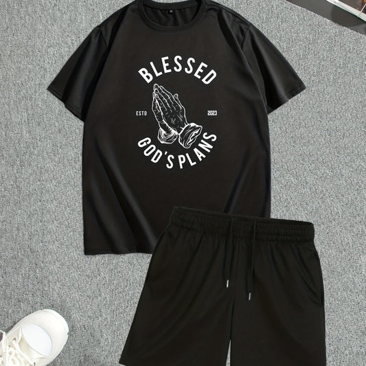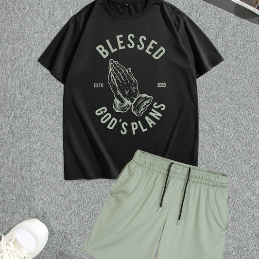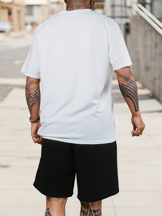 Men's Street Style Summer 2PCS Outfits, Male's Trend TRUST Graphic Short-sleeve Crew Neck T-shirt Drawstring Shorts Set, Casual Clothes For Men