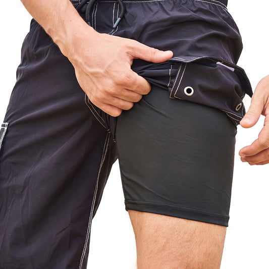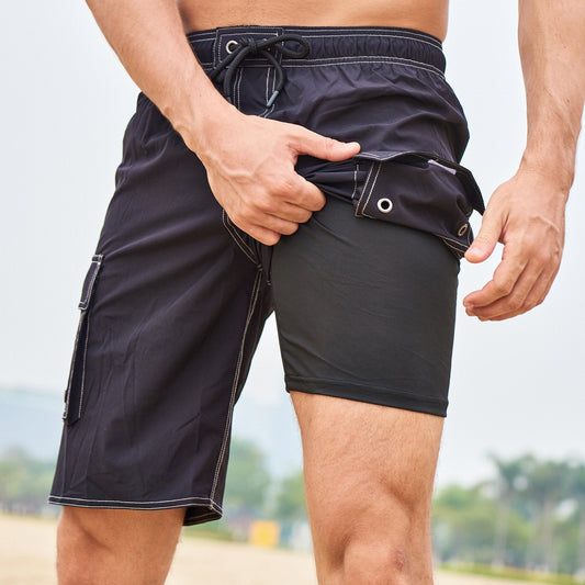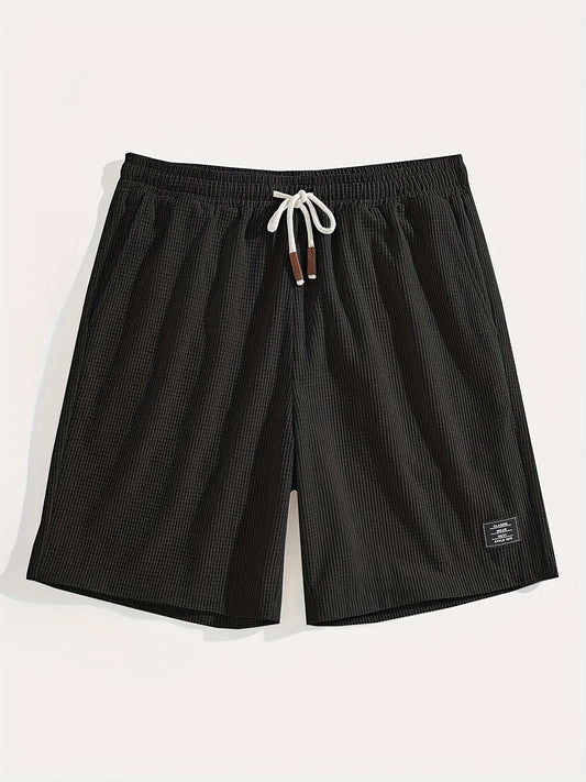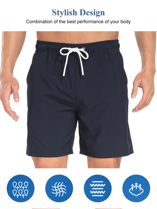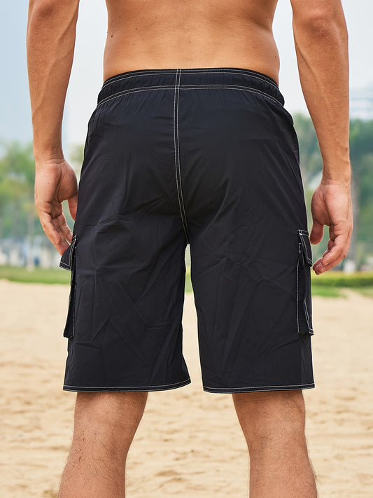 Men's Quick-Dry Swim Shorts with Adjustable Drawstring Waist & Pockets - Sporty Solid Black Beach Shorts for Swimming, Surfing, Water Sports - Machine Washable Regular Fit, Swimming Gear | Sleek Construction