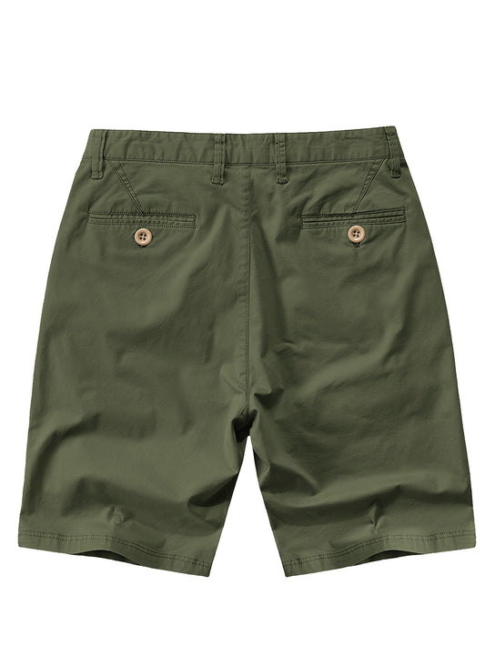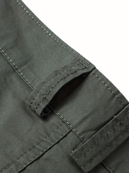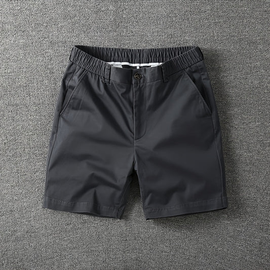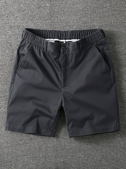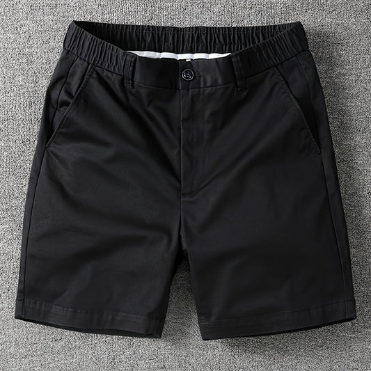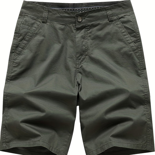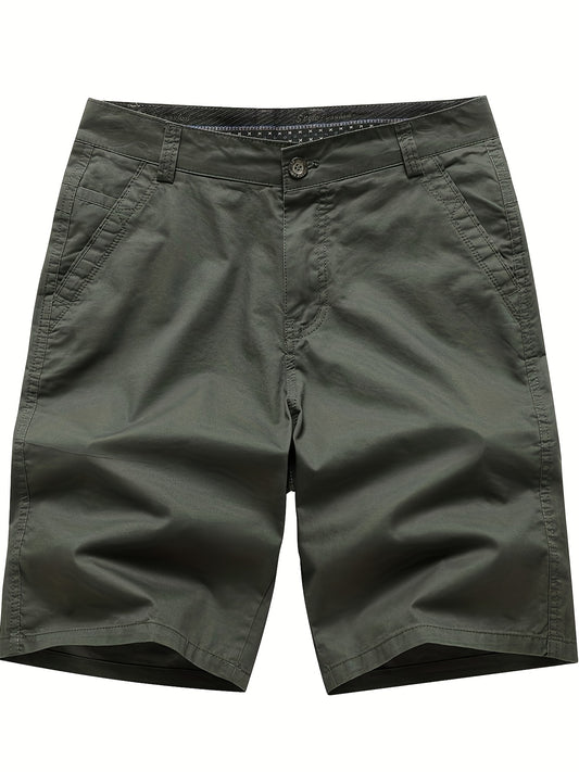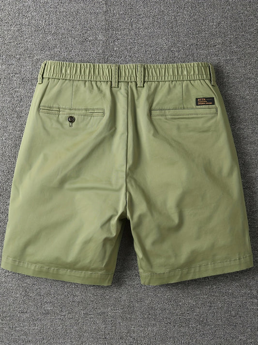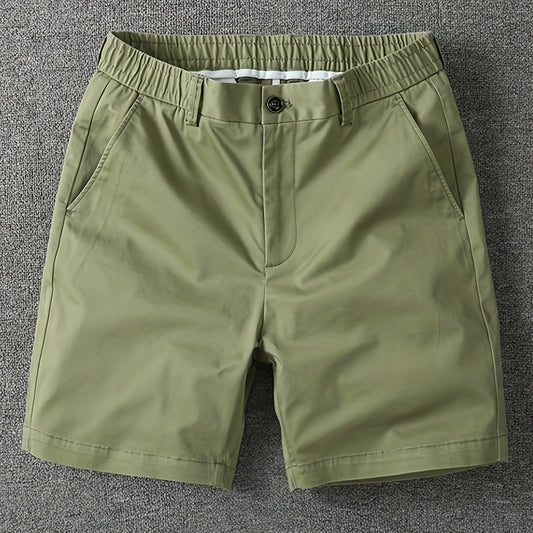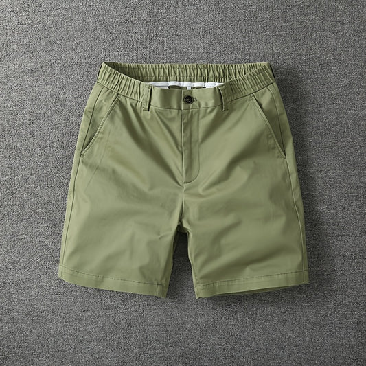 Men's Summer Micro-Elastic Casual Shorts - Four-Tenths Length, Olive Green, Mid-Rise Waist, Elastic Waistband, Side Pockets, Lightweight & Breathable for Casual Attire